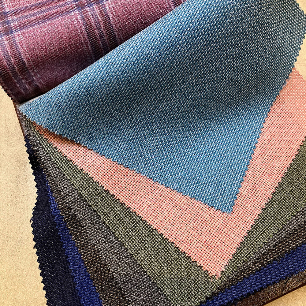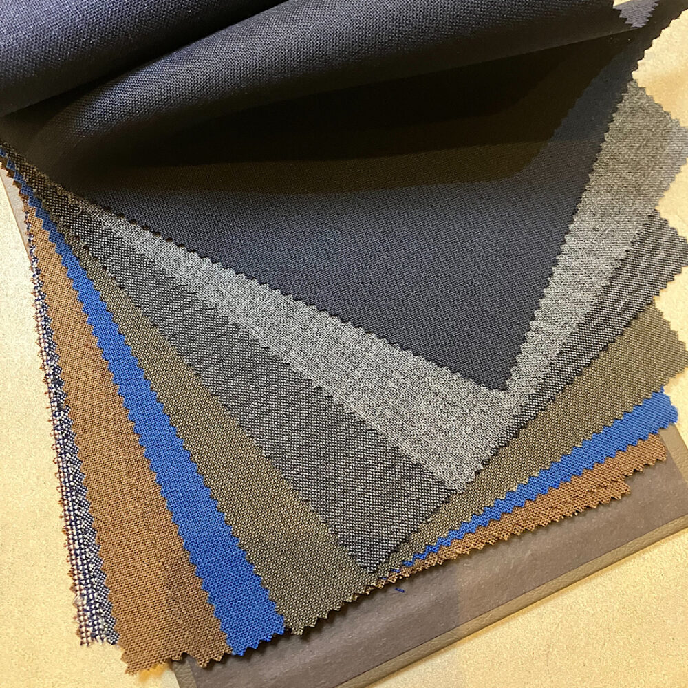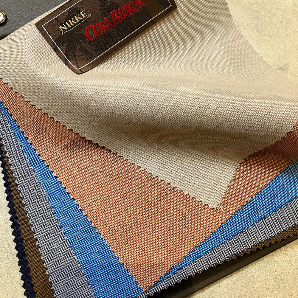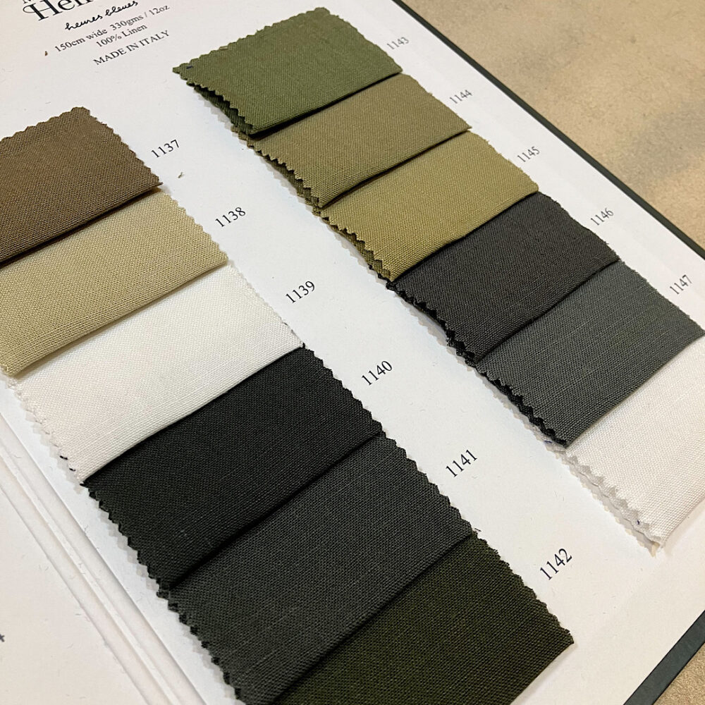 ノルマンディー産の上質リネンをイタリアで織り上げ、しなやかでナチュラルなストレッチ性が特徴の注目生地です。